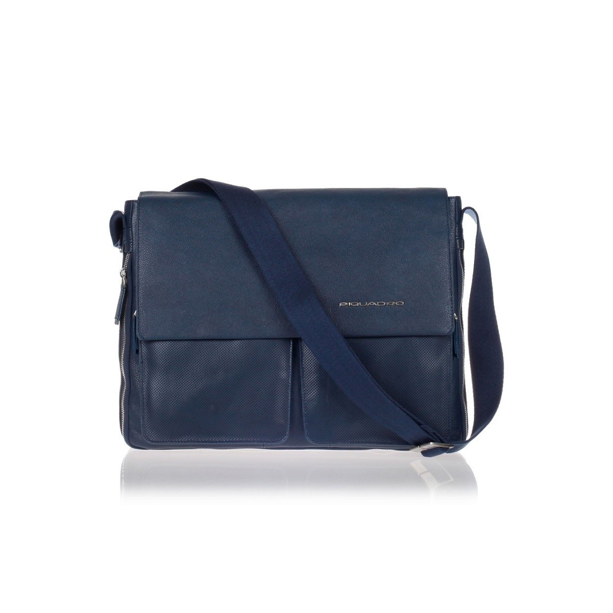 Piquadro Messenger Laptop Tasche blau Leder mit Riemen und erweiterbare Laszlo Innenraum Zubehör