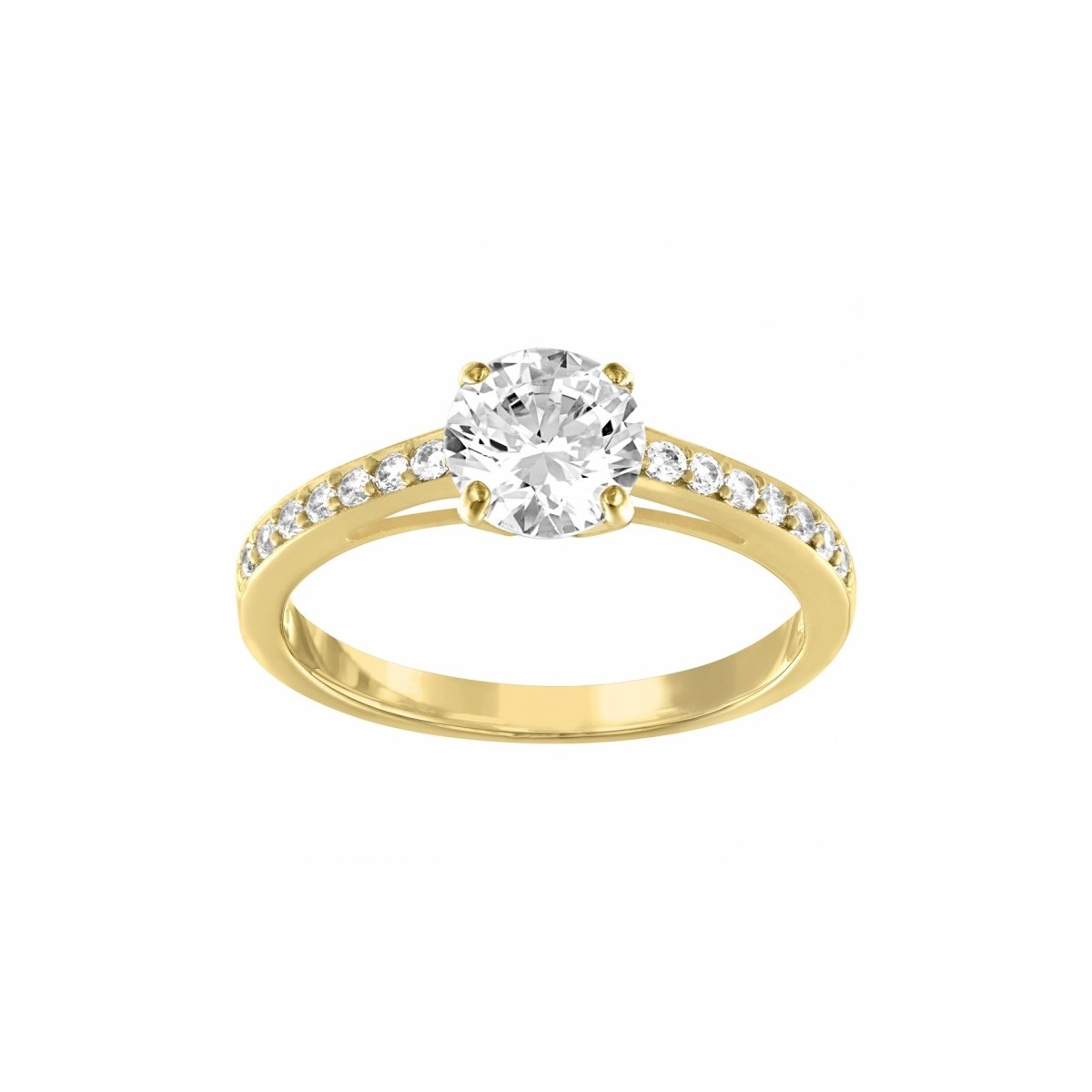 Hier sind diese geschätzt Swarovski-Ring in der klassischen Version, die eine zentrale Runde Kristall und Minuten Chaton angeordnet, die entlang des oberen Teils dieser vergoldeten Schöpfung, ideal, um mit Ihren Chefs bei Tag und bei Nacht bietet.