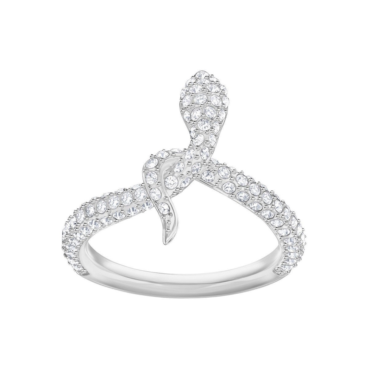 Frauenring, Schlangenmodell, mit Pavé aus weißen Kristallen einzeln geklebt und Silber Rhodiumtropfen, Größe 55
