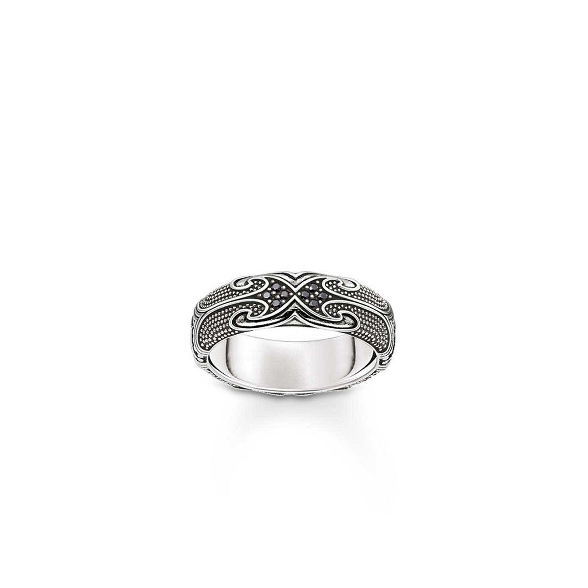 Herz Silber 925 Ringleitung und Niello, fein gearbeitete und verziert mit schwarzen synthetischen Zirkonia-Pavé mit Maori Designs zu rebellieren