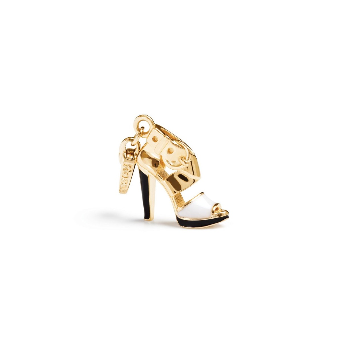 Vergoldete Silber Charme mit Details in schwarz und weiß Emaille