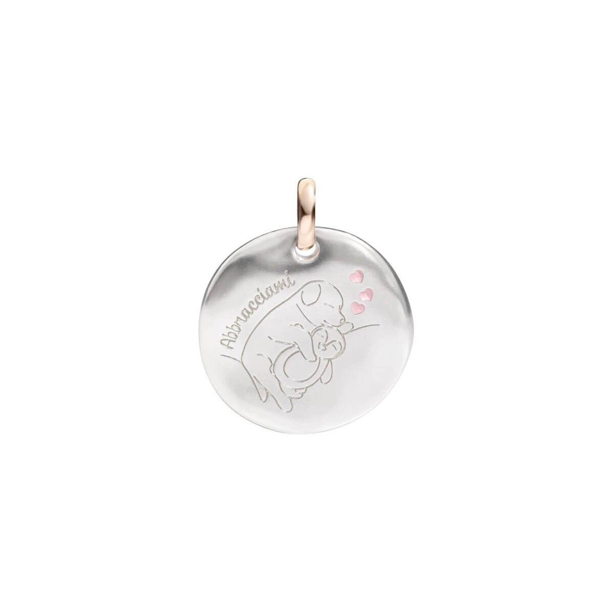 Große Münzkomponente Abbracciamim, Cafìgnolini, umarmt in 925er Silber mit 9-karätigem Goldring für Civita Queriot-Armbänder und -Halsketten aus Silber oder gewachster Baumwolle - F16A03M1358