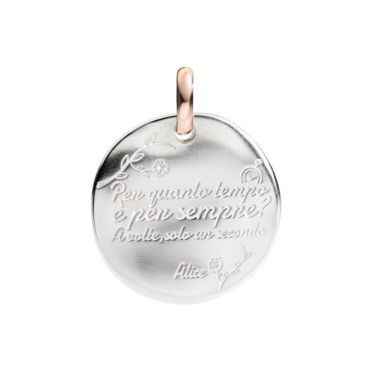 Big Coin Component Wie lange ist es für immer? Manchmal nur für eine Zweite - Alice im Wunderland - 925 Silber und 9kt rosa Strick mit weißer Emaille in weißer Farbe - F16A03M9261