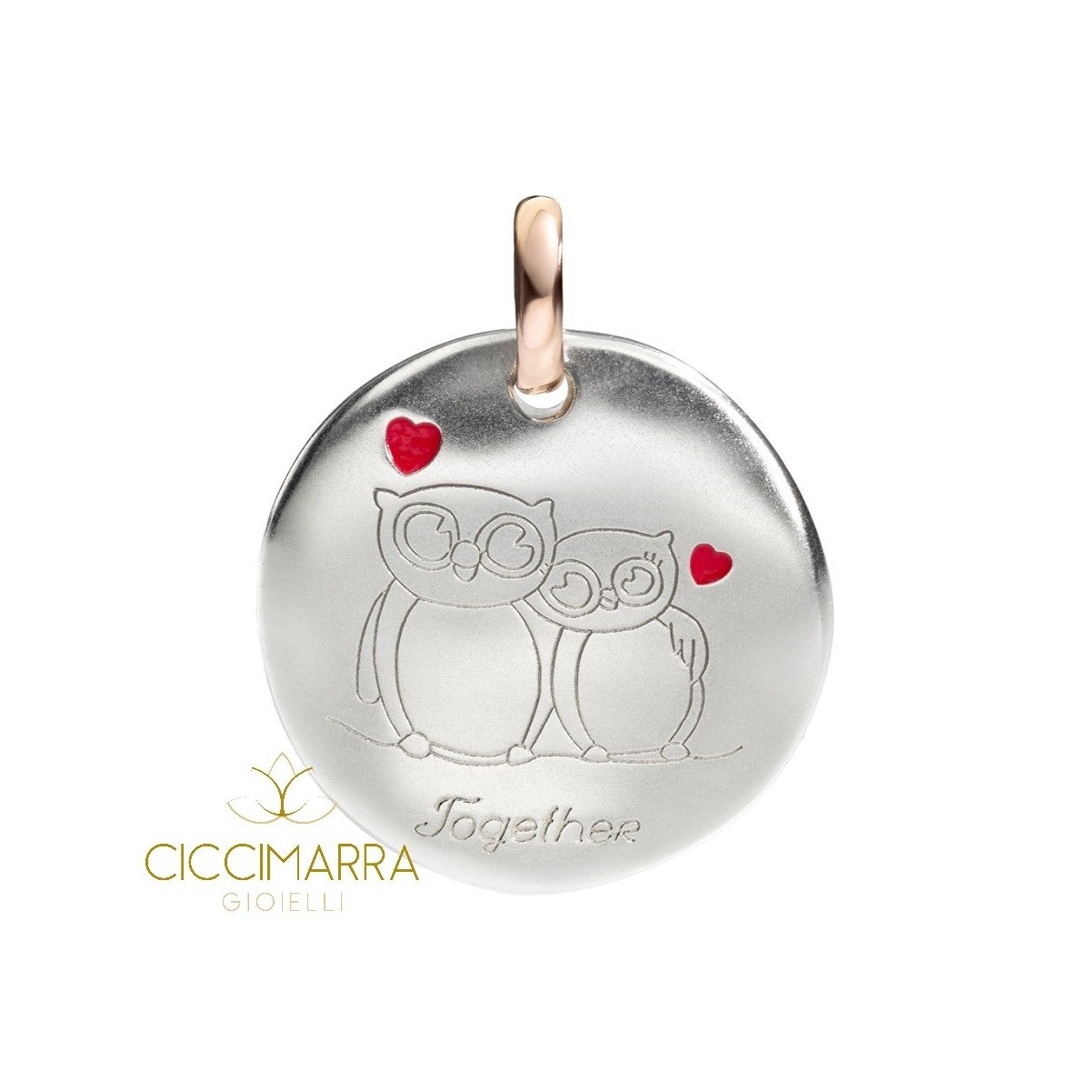 Große Münze Komponente, Valentine 2018, mit Eulen in 925 Silber mit 9 kt Roségold-Ring für Armbänder und Halsketten Civita Queriot in Silber oder gewachste Baumwolle F17A03M3062