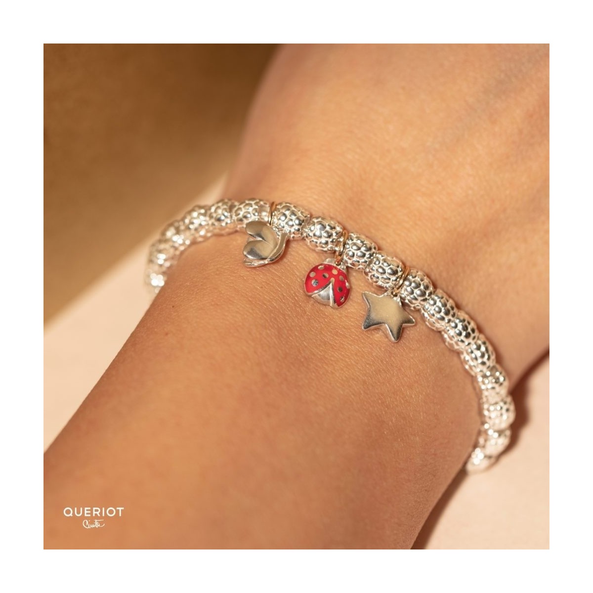 Anhänger-Mikroanhänger aus Armband oder Halskette aus Sterlingsilber und 9 Karat Roségold-Haken in Sternform. Schließen Sie die Augen und schauen Sie das Unendliche an.
