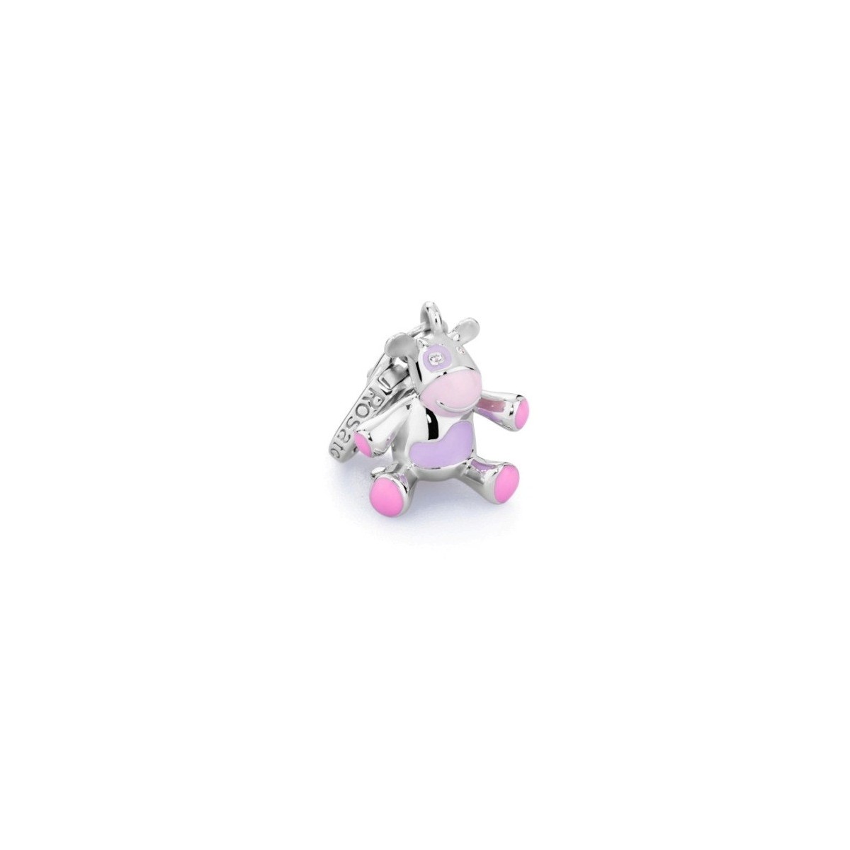Kuh-Charme in Silber mit Zirkonias und weiße emaillierte details