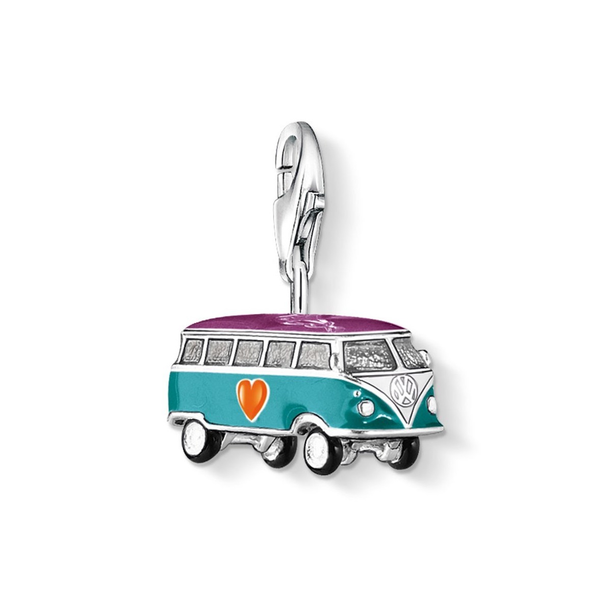 VW-Bus Anhänger 925 Sterlingsilber und Emaille Club Linie Creme, gelb, Orange, schwarz und lila