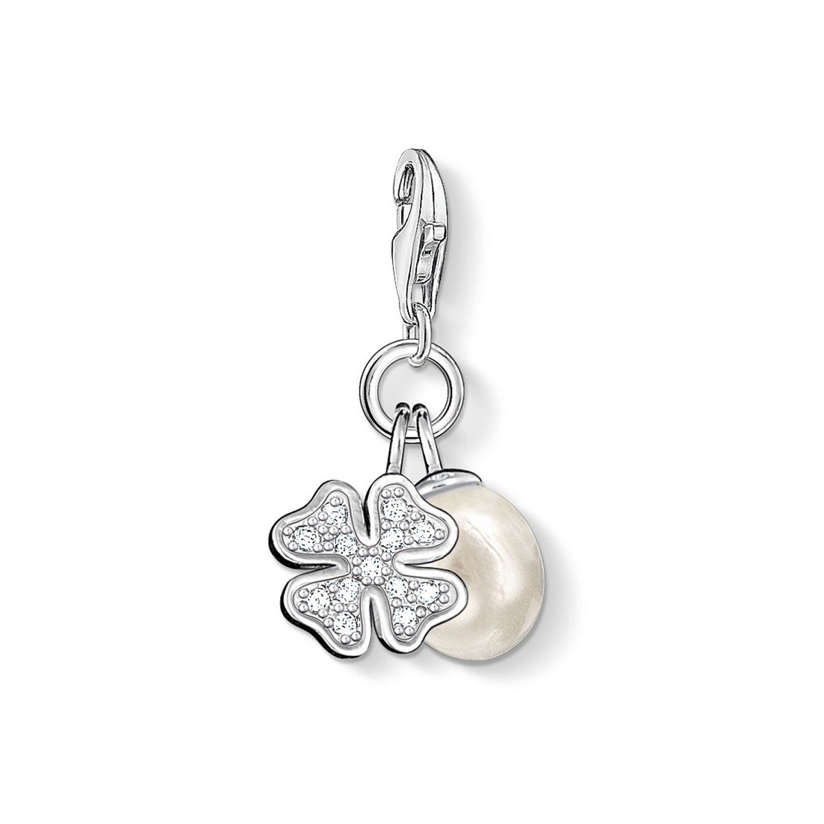 Vierblättriges Kleeblatt Anhänger Linie Club bestehend aus zwei Anhänger, eine Perle kultivierten Süßwasser und ein vierblättriges Kleeblatt Sterlingsilber 925 mit pave weißen Zirkonia, synthetische