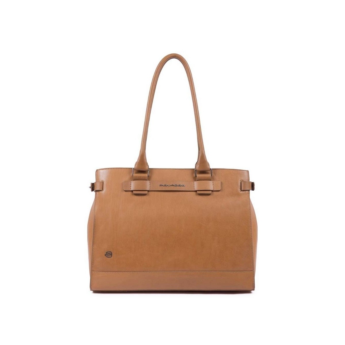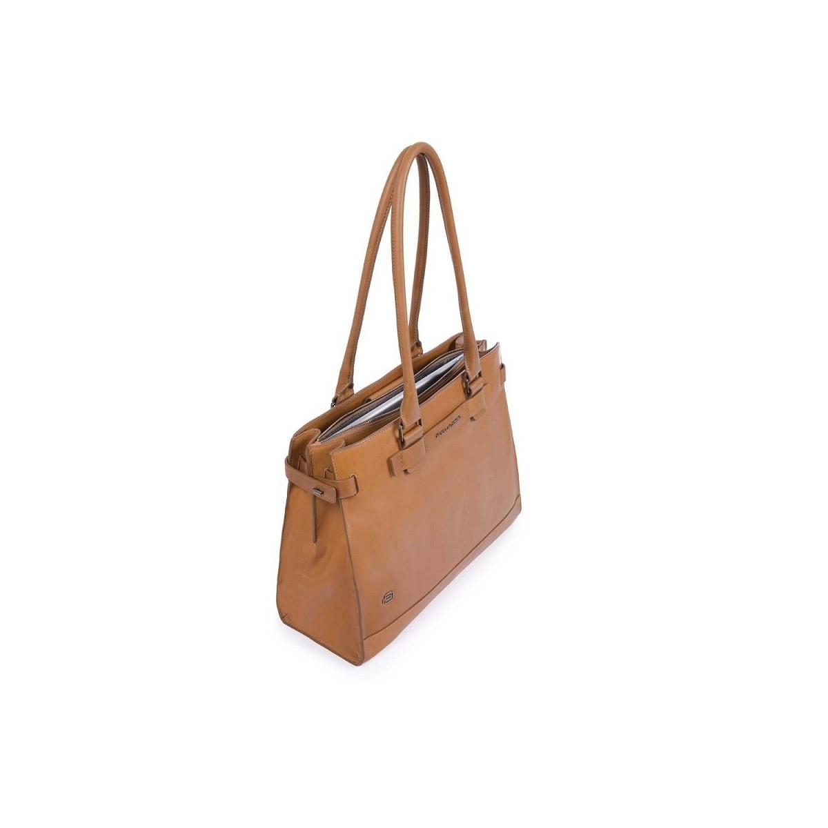 Frauentasche für iPad und Computergehäuse mit stoßfestem Schutz, lange Griffe CUBE-Linie in Lederfarbe Leder; Logogravur und unterteilte Fächer...