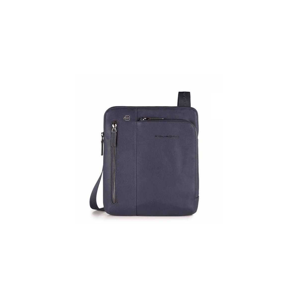Herrentasche aus der Black Square Serie komplett aus echtem italienischem Leder in einem intensiven Blau. Die Tasche hat eine doppelte Vordertasche und eine Gesäßtasche mit Reißverschluss, verstellbaren, genähten Schultergurt und eine feste Innenorganisation mit Ipad-Halter, Schlüsselhalter und Stifthalter, um im Piquadro-Stil alles immer griffbereit zu haben.