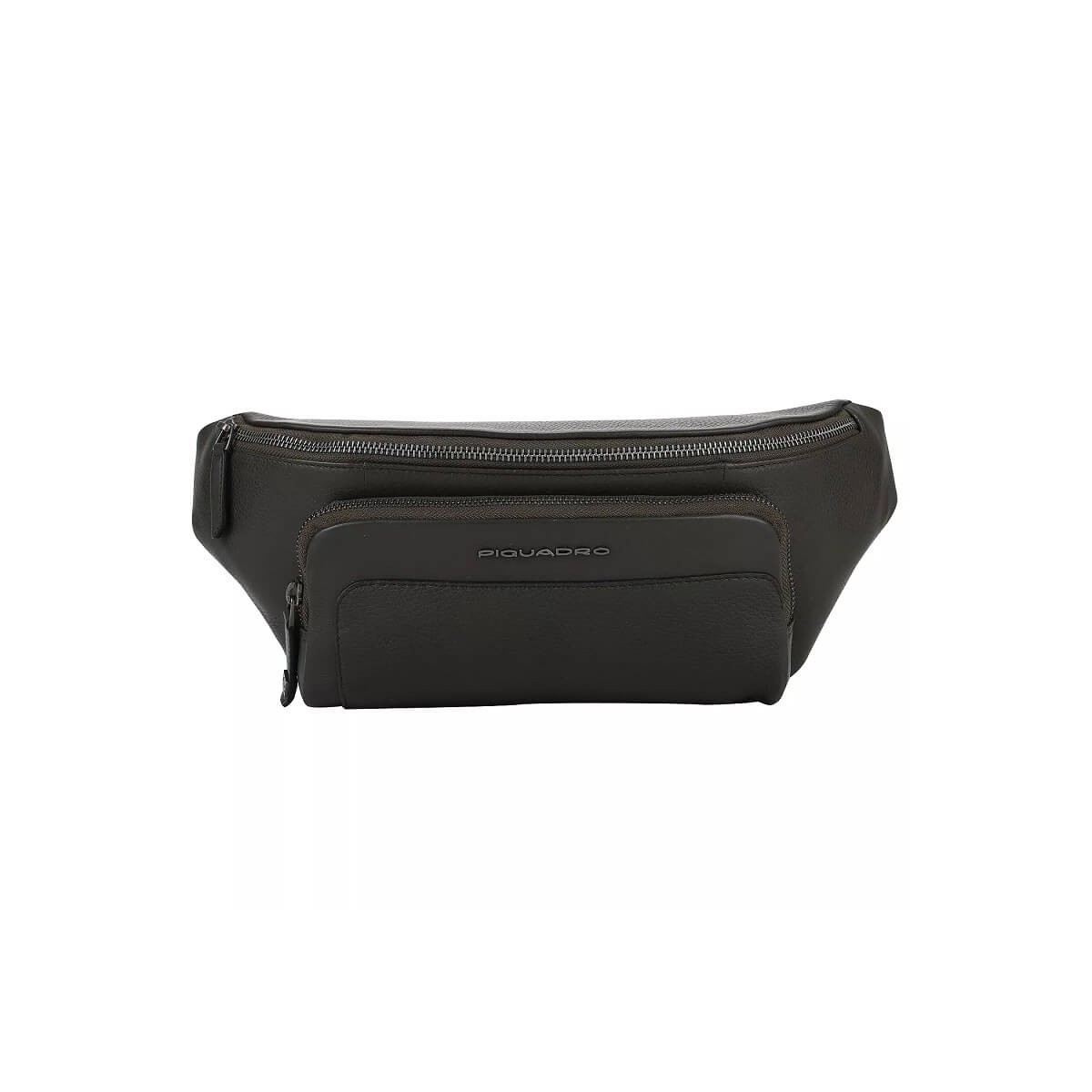 Piquadro Herren-Gürteltasche aus der Feels-Kollektion aus dunkelgrünem, fein genarbtem Rindsleder mit weicher Haptik. Tasche, gekennzeichnet durch ein Fach mit fester Innenorganisation und einer Vordertasche für Gegenstände mit Reißverschluss. Verstellbarer Cordura-Gürtel mit Schnalle. Ultraleichter Artikel, geschaffen für einen informellen und dynamischen Stil.