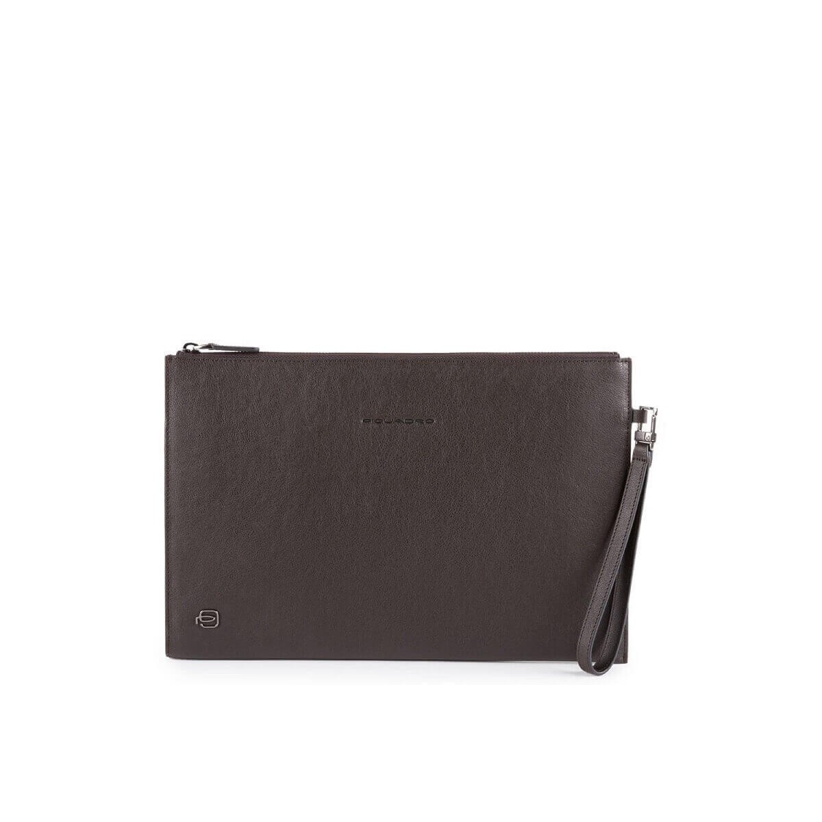 Piquadro Herrenhandgelenk-Clutch aus der Black Square-Kollektion aus dunkelbraunem Leder mit feiner Narbung und weicher Haptik. Tasche, gekennzeichnet durch ein einzelnes Fach mit fester interner Organisation und Mini-iPad-Halter. Reißverschluss. Abnehmbare Handschlaufe. Ultraleichter Artikel, geschaffen für einen informellen und dynamischen Stil.