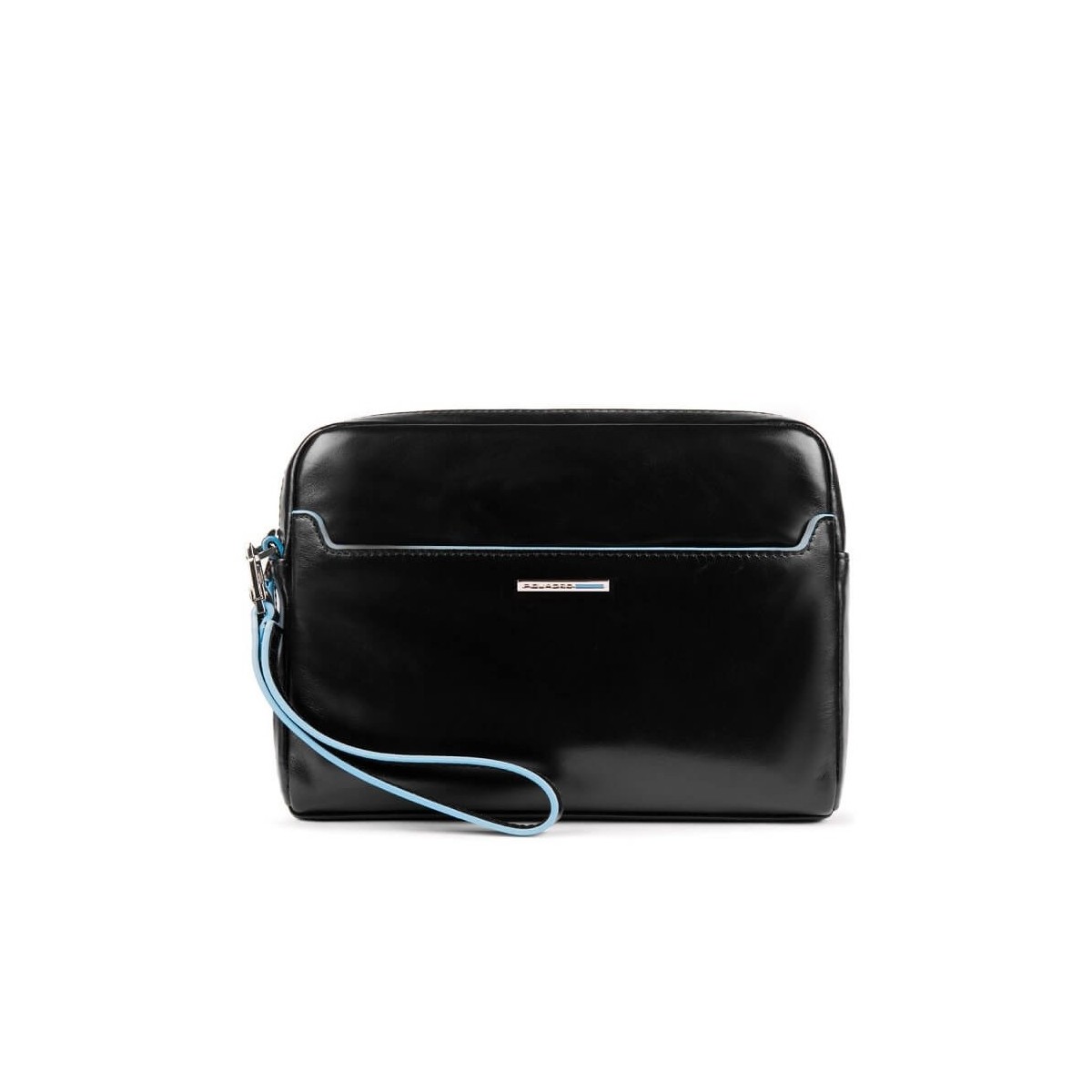 Piquadro Stationery Clutch mit Manschette aus schwarzem Leder