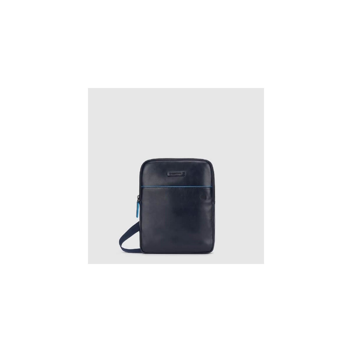 Erweiterbare Tasche mit gepolstertem Fach, iPad-Halter, Piquadro aus der Blue Square-Linie, Stifthalter, aus echtem blauem Leder, mit Stoßschutz, feste Innenorganisation.