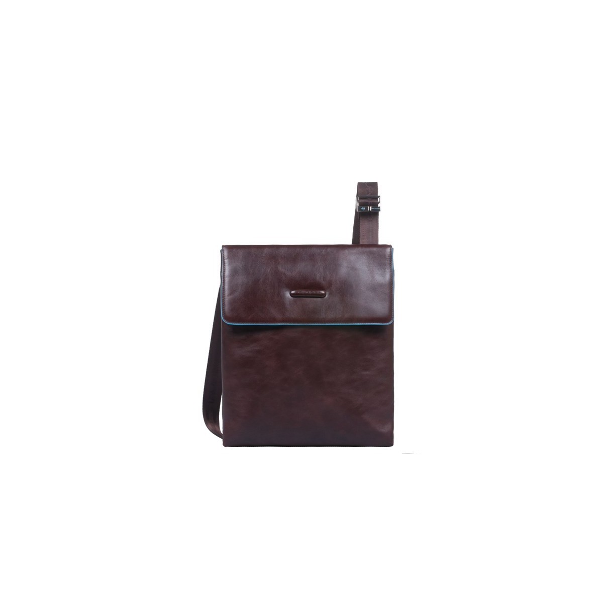 Piquadro Borsellotto in Pelle Leder mit Reissverschluss in Blue Square Pellegrigio Mahagoni Farbe