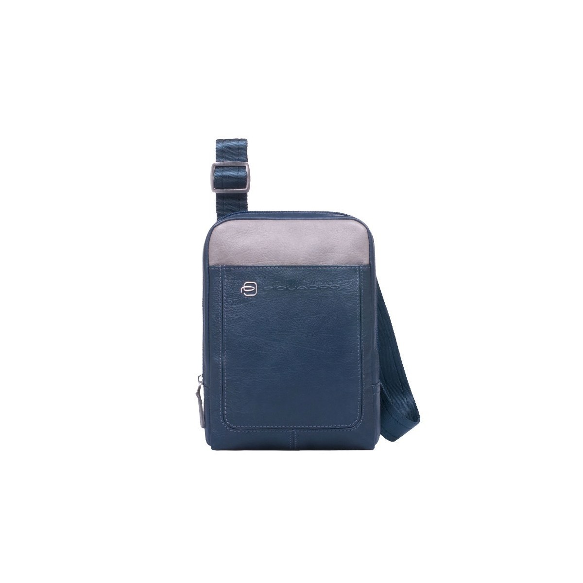 Piquadro Geldbörse mit iPad ® Mini Vibe Linie blau und grau Leder Umhängetasche