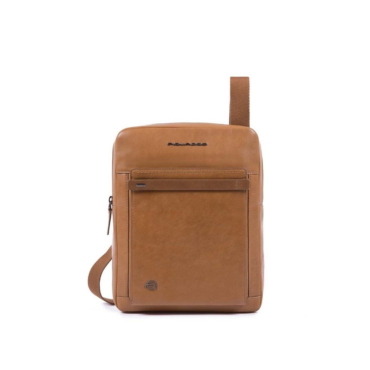 Tasche mit iPad-Fach, CUBE-Linie in Leder, mit einem verstellbaren Schultergurt und Staufächer; graviertes Logo