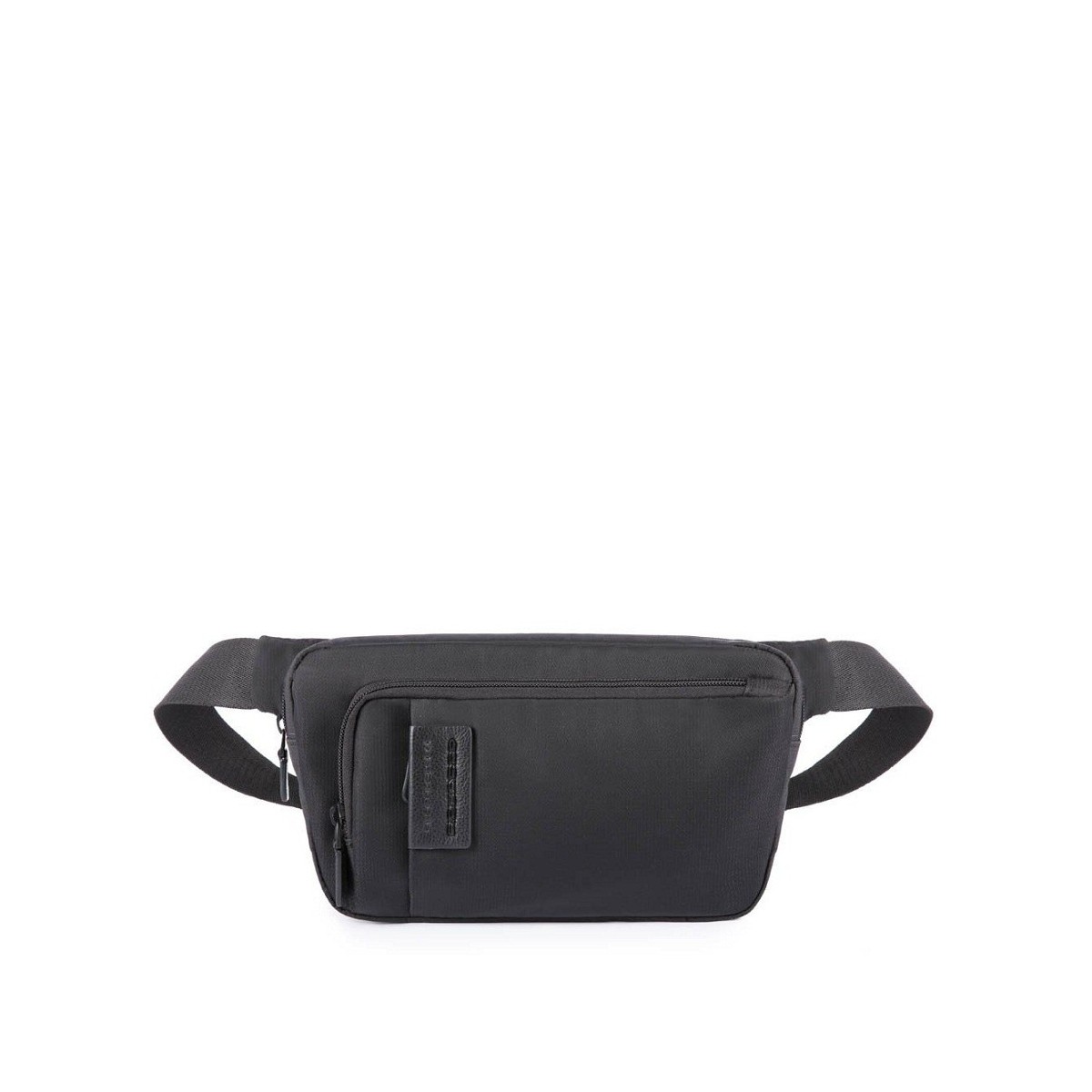 Herrentasche aus schwarzem Stoff aus der P16-Kollektion. Die Pulse P16-Linie zeichnet sich durch die Kombination von Materialien mit unterschiedlichen Texturen aus, was das ursprüngliche Design der Kollektion unterstreicht: weiches Kalbsleder kombiniert mit verschiedenen Stofftypen, um jeden Geschmack zu befriedigen. Alle Accessoires haben ein elegantes mattschwarzes Finish.