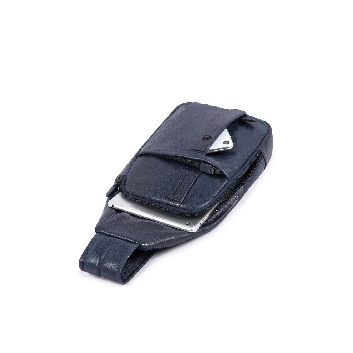 Herren-Umhängetasche aus blauem Leder mit dem I Pad der P15 Plus-Kollektion
