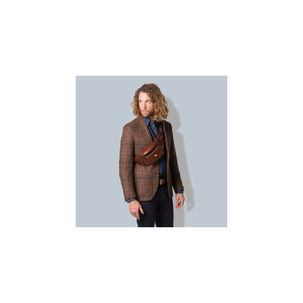 The Bridge Gürteltasche aus echtem hellbraunem Leder mit Reißverschluss und Außentaschen mit Reißverschluss, verstellbarem Schultergurt. Einfach und effektiv.