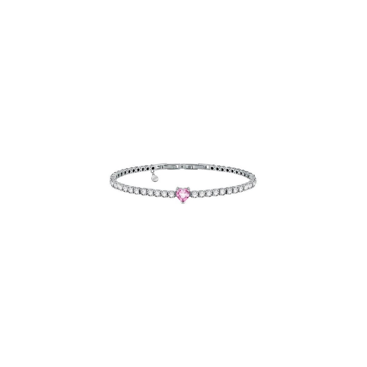 Tennisarmband aus der First Love-Kollektion mit weißen Zirkonen und zentralem rosa Herz