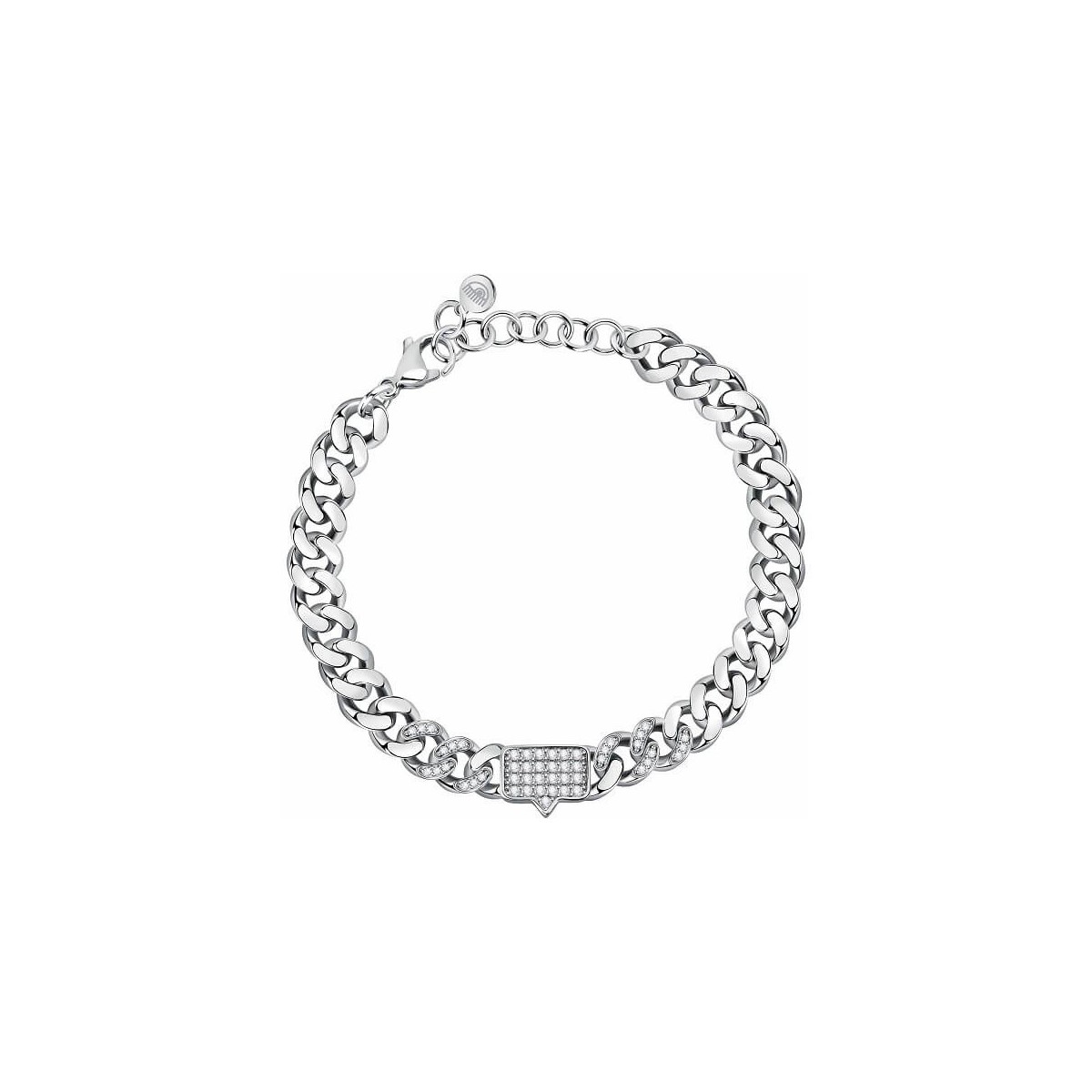 Kettenarmband aus der Bossy Chain-Kollektion aus rhodiniertem Stahl und zentralem weißen Zirkonpavé