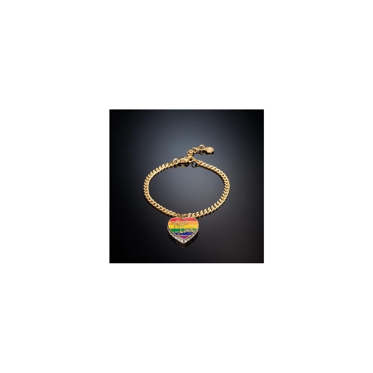 Armband aus der Love Parade True Love-Kollektion aus gelbvergoldetem Stahl mit mehrfarbigem Herz.