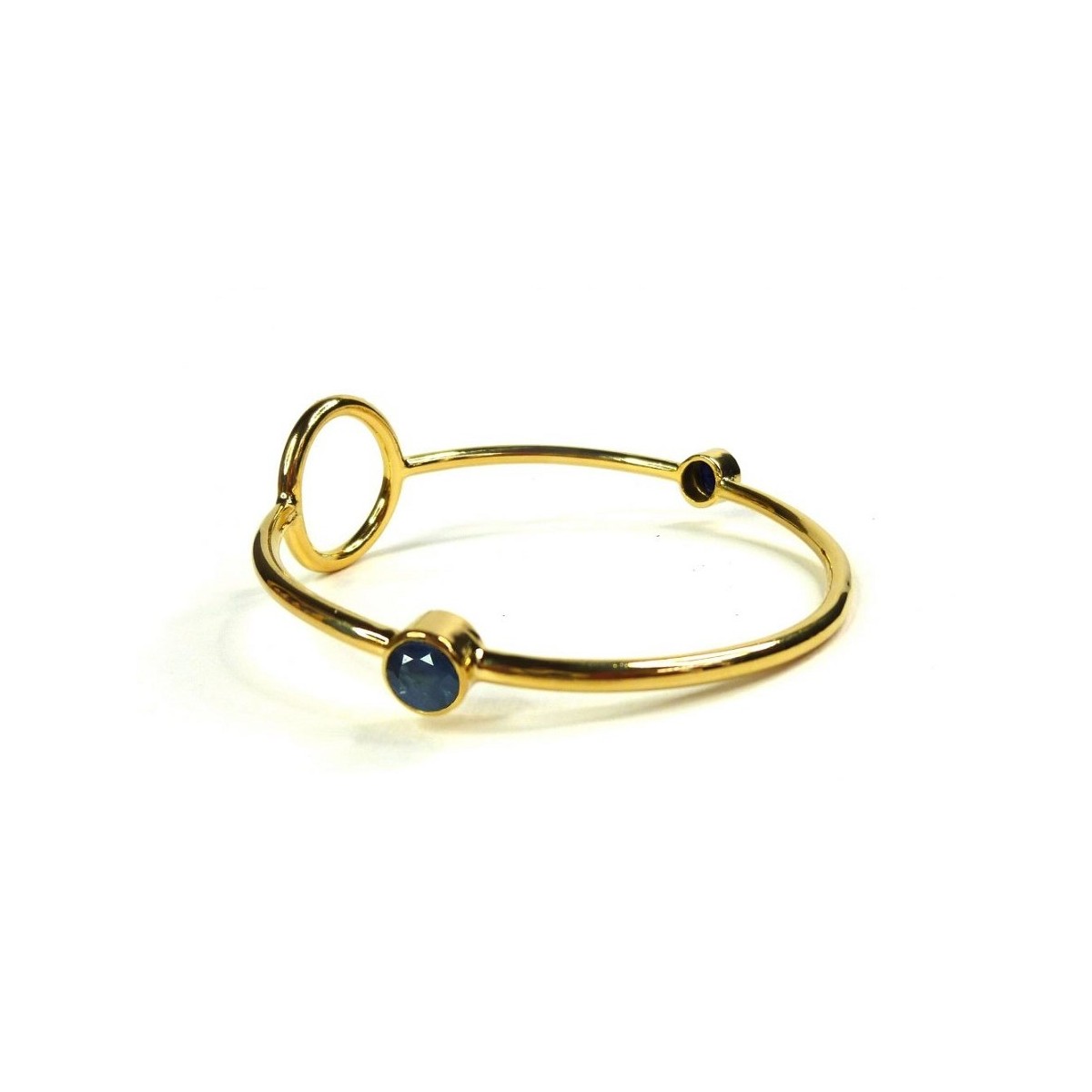 Armband der steifen Unity-Linie mit zwei eingebetteten Saphir-Steinen in 23.5 Karat vergoldetem Messing.