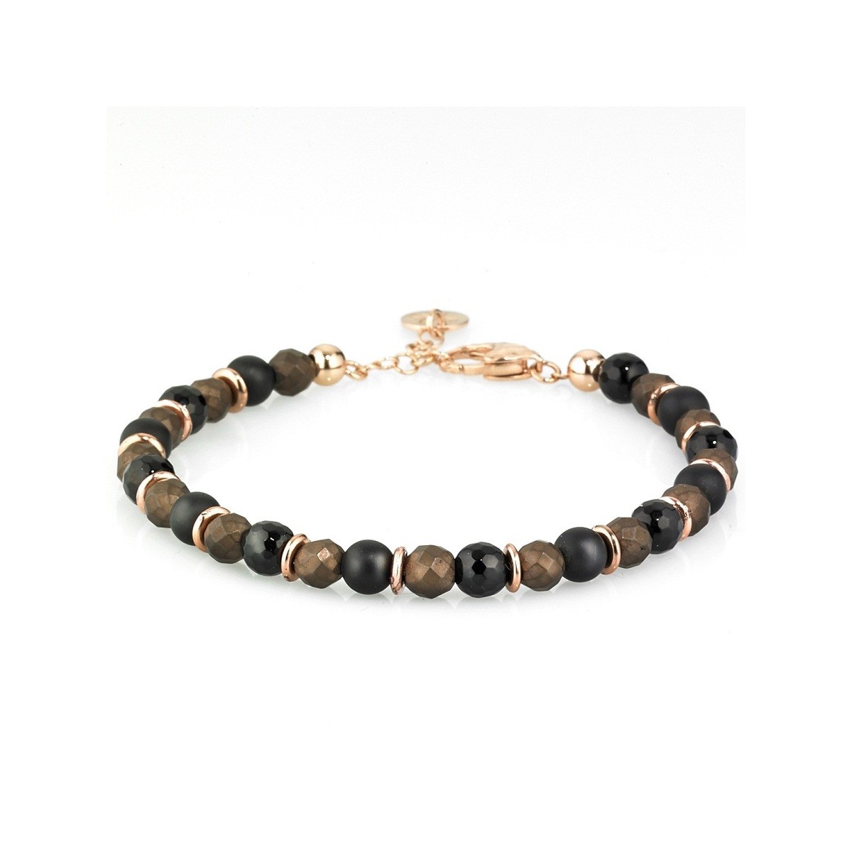 Handgefertigtes Armband mit Faden und Verschluss in 925 Silber Rosé, Onice, facettierten braunen Hämatit