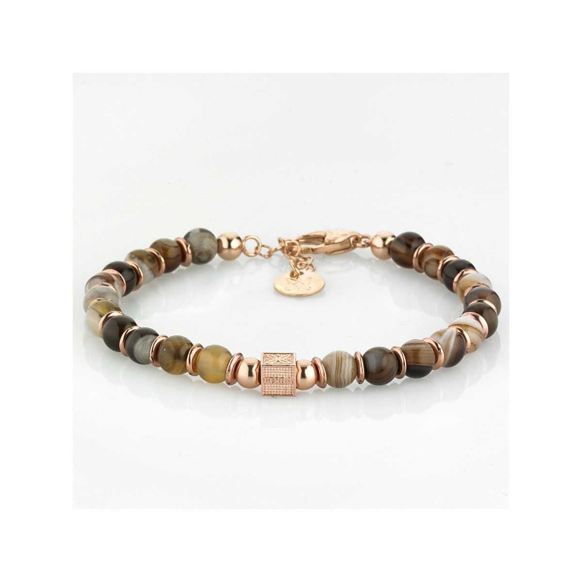 Handgefertigtes Armband mit Faden und Verschluss in Silber 925 Rosè und Agata Shades.