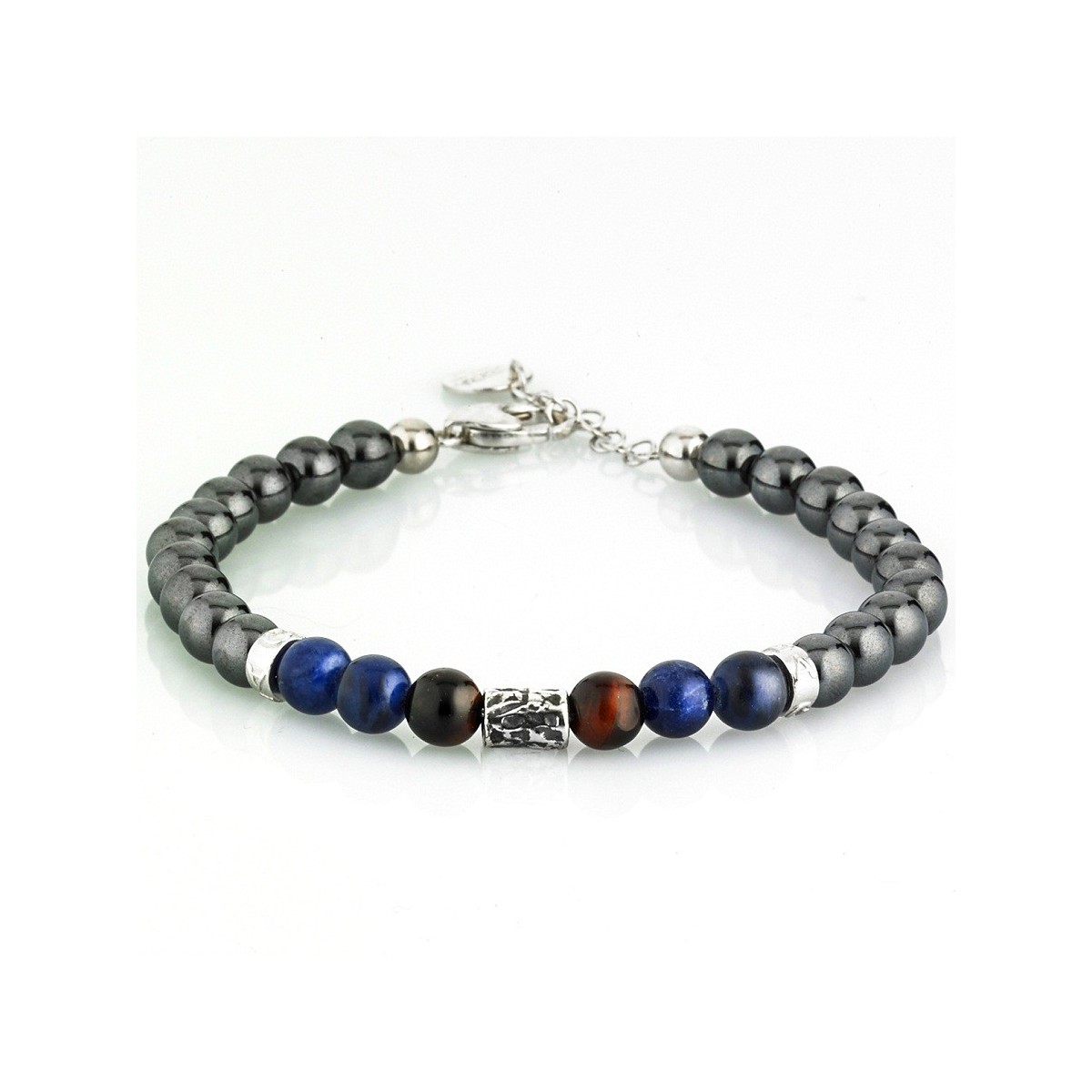 Handgefertigtes Armband mit Faden und Verschluss in 925 Silber, Hämatit, Sodalit und rotem Tigerauge
