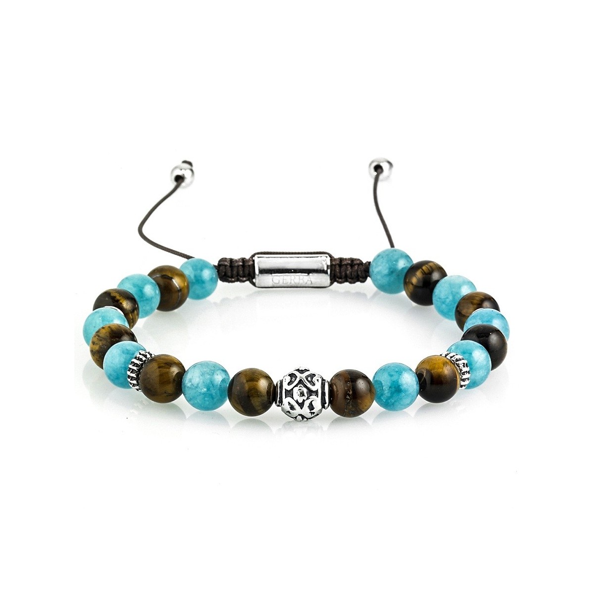 Macrame-Datei Armband mit Tiger Eye und Angelite Steine und 925 Silber Details gemacht