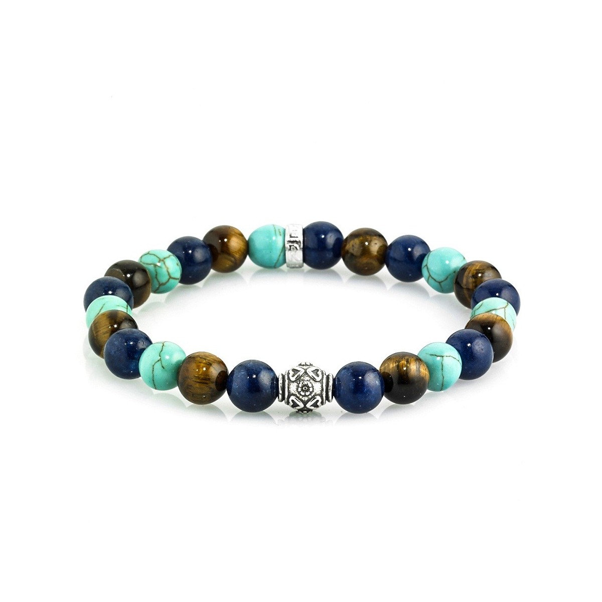 Handgefertigte Elastische String Armband mit Tigerauge, Achat, Diaspro und Silber 925 Silber.
