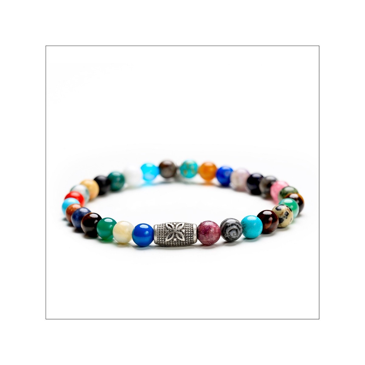 Elastisches Armband aus einer Mischung aus farbigen Steinen und Details aus Silber 925.