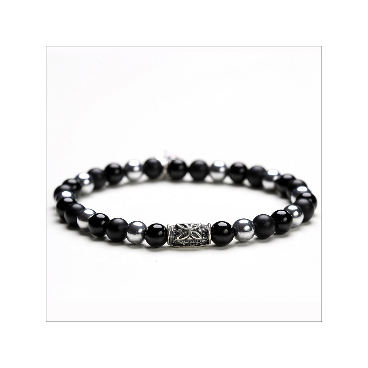 Armband aus 6mm Onyx Steine, Silber Bälle und Silber 925 Elemente
