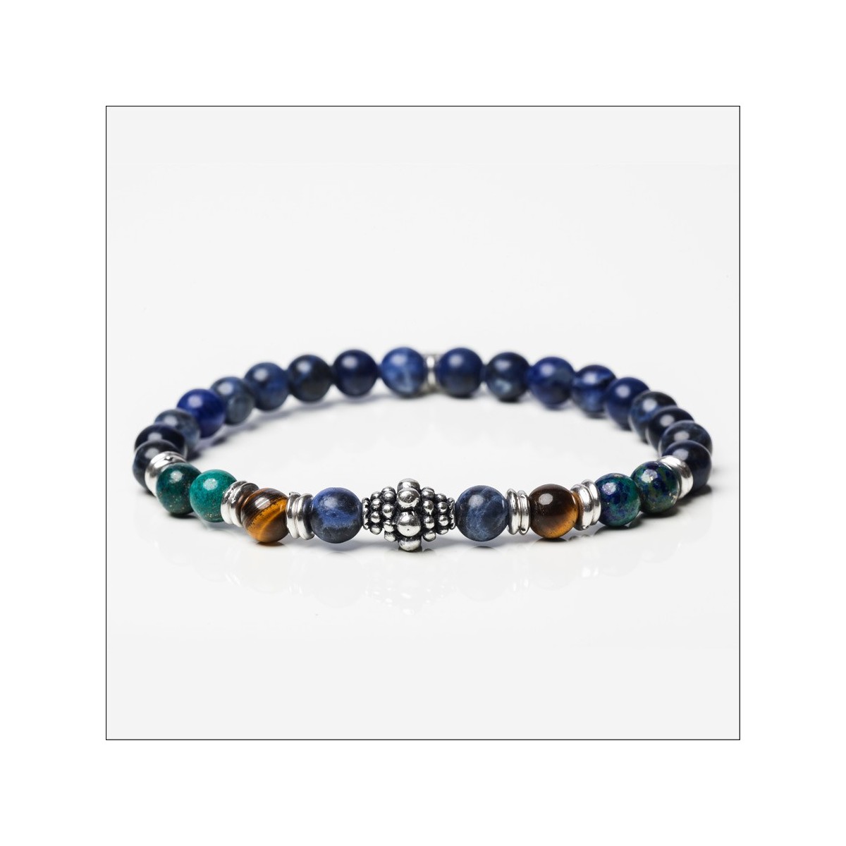 Elastisches Armband aus Sodalit-Steinen - Tigerauge - Diaspro und Details aus 925er Silber und Metall.
