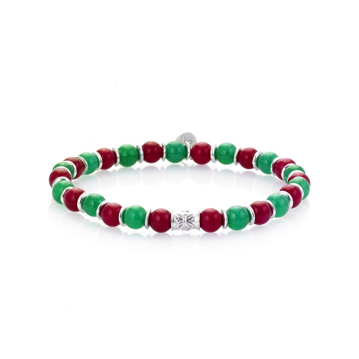 Handgefertigte elastische Schnur Armband mit Achat Steine, Logo und Komponenten in Silber 925.