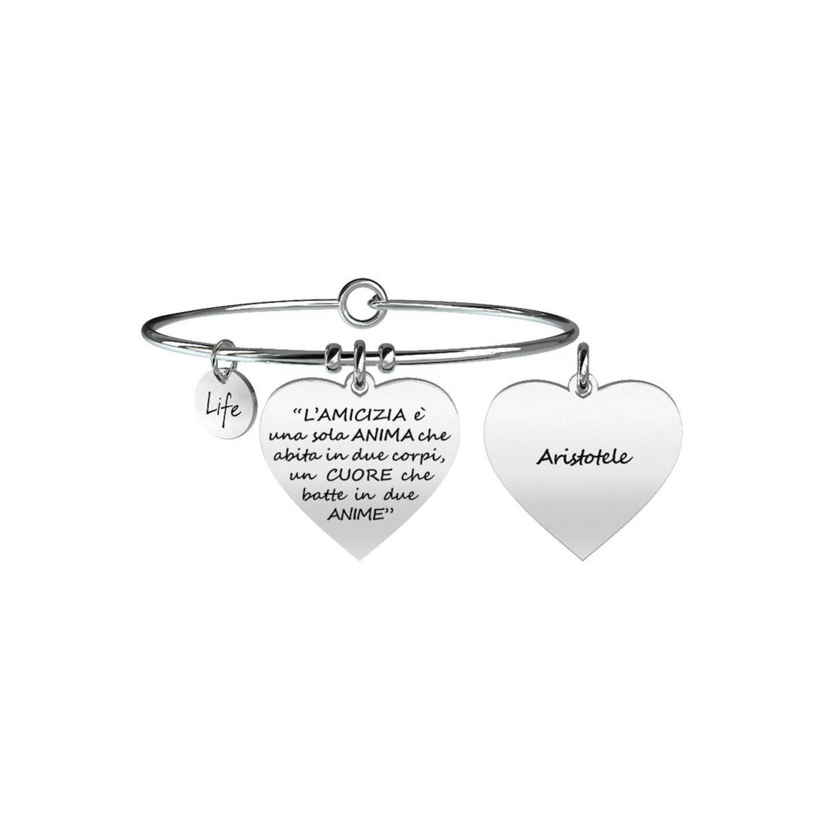 "Freundschaft ist eine Seele, die in zwei Körper lebt, ein Herz, das in zwei Seelen schlägt." - Aristoteles - Dies ist die Phrase auf dem herzförmigen Anhänger und runden Anhänger mit "Leben"