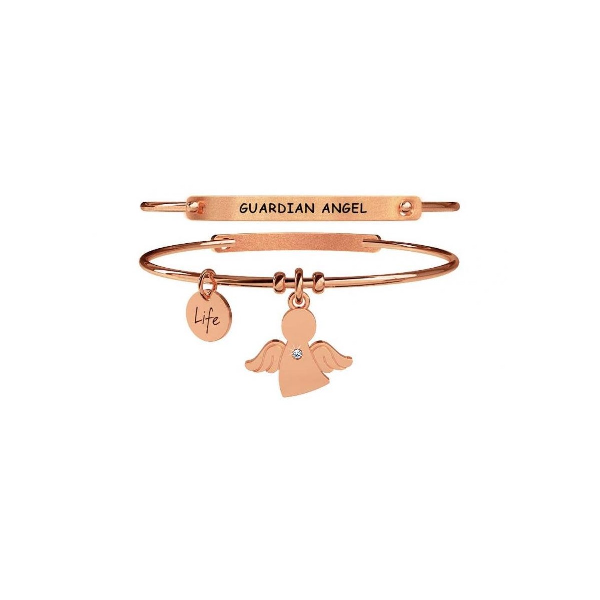 Mit ihm ist deine sicherste Seite der Weg deiner Reise. Stellen Sie sich Ihr freies Leben, um Ihrem Instinkt zu folgen, weil Sie immer neben dem haben, der Sie schützt. Runder Anhänger mit "Life", einem hellen Engel-förmigen Anhänger und einem Schriftzug "Guardian Angel"