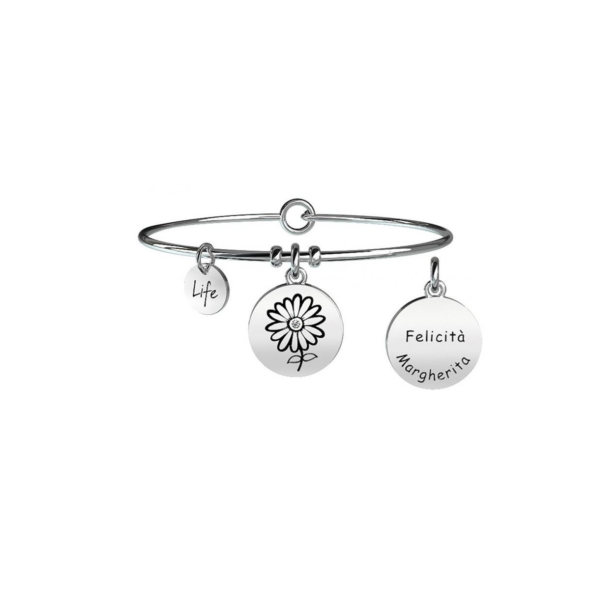 Starre Stahlarmband mit Anhänger und Spotlicht Daisy mit Felgenverschluss bestreut