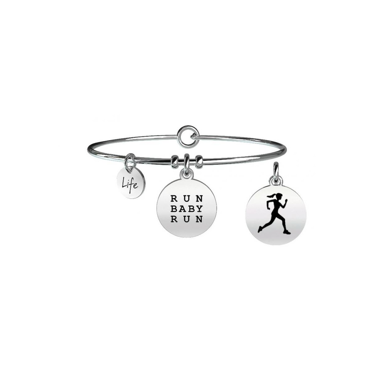 Ich liebe es zu laufen. Jedes Mal, wenn ich kann, jedes Mal, wenn ich es brauche. Flügel zu meinen Füßen und meine Playlist im Kopfhörer. Ohne etwas zu denken, weiter weg zu kommen. Runder Anhänger mit "Leben" und Anhänger mit "Lauf Baby laufen" auf der einen Seite und Korridor Form auf der anderen Seite