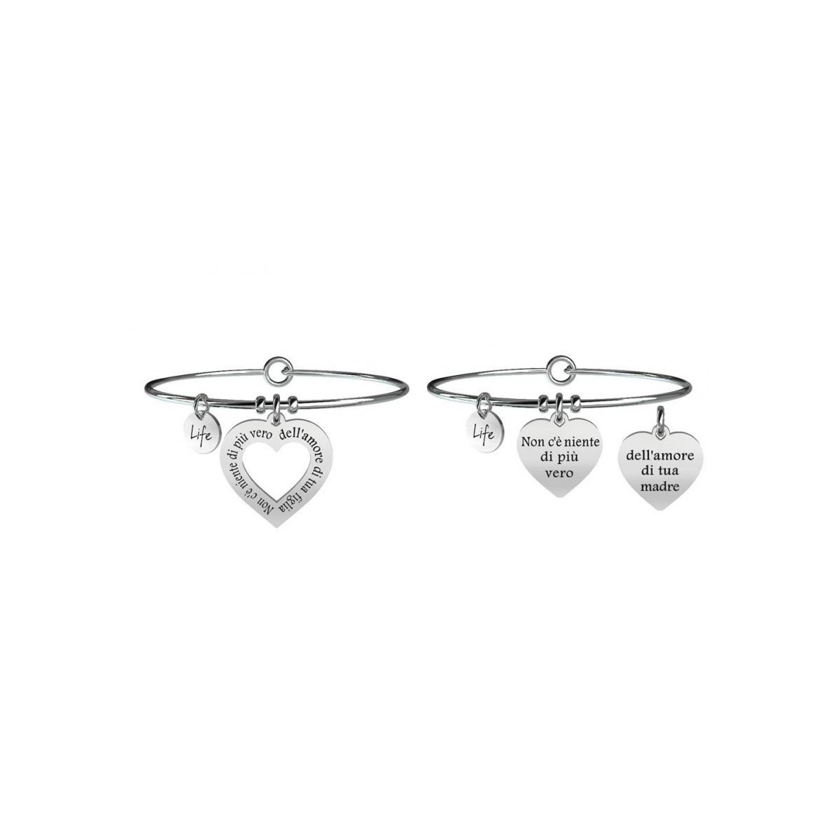 Auf beiden gibt es den runden Anhänger mit dem Wort "Leben", in dem für die Mutter die Form eines Herzens mit der Inschrift "Es gibt nichts wahrer als die Liebe deiner Tochter" und in der Für ihre Tochter "Es gibt nichts mehr Wahr als die Liebe deiner Mutter. "