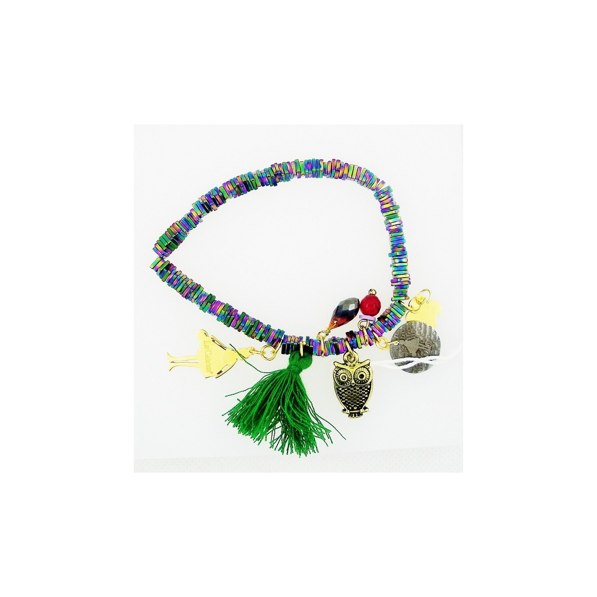 Die Carose von Toco Encanto Armband mit Metalleinsätze und gesteppt; Charms Anhänger. Multicolor grün. Viel Glück
