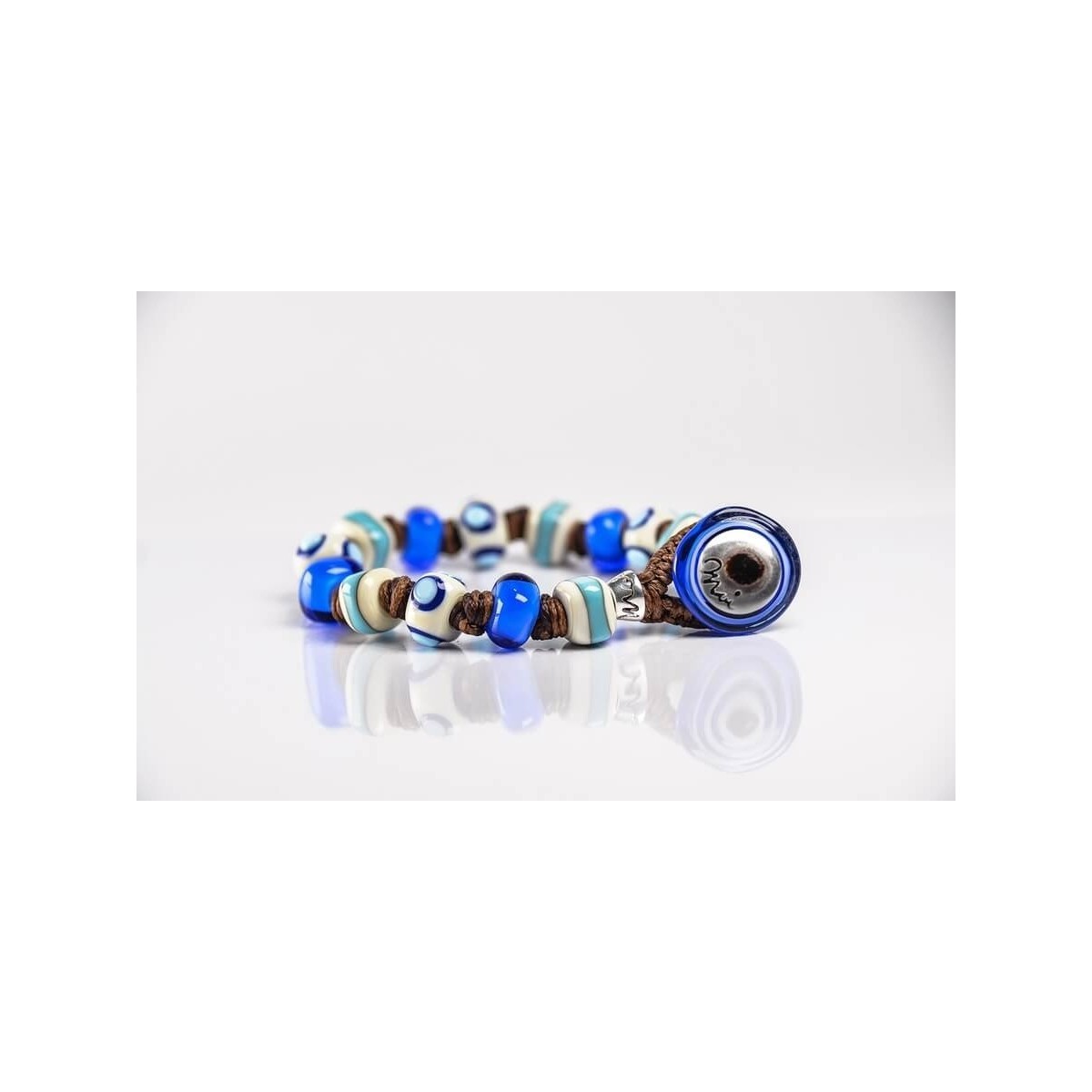 Original Moi Herren- und Damenarmband mit Stoffkordel und Murano-Glasperlen in Blau und Sand, Designer Franco Cannarile - Ebermund