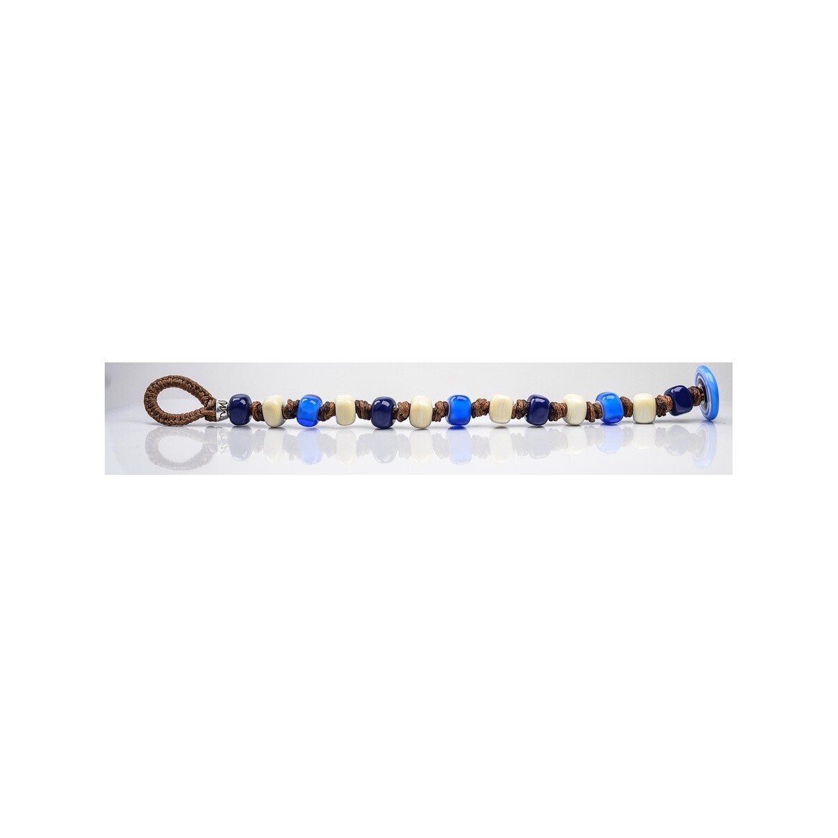 Original Moi Herren- und Damenarmband mit Stoffkordel und cremefarbenen und blauen Murano-Glasperlen, Designer Franco Cannarile - Zefiro