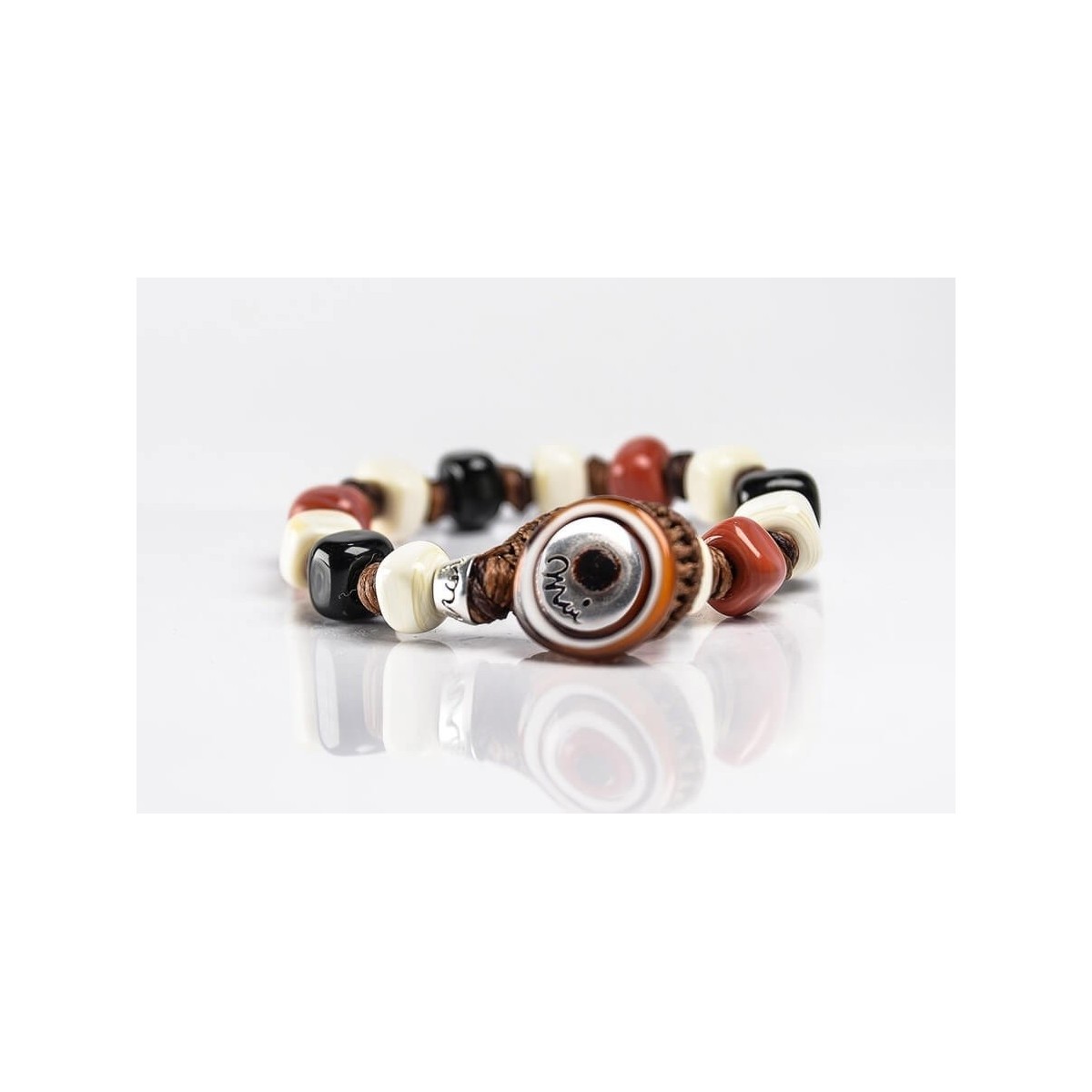 Original Moi Herren- und Damenarmband mit Stoffkordel und Murano-Glasperlen, Karamellbeige und Schwarz, Designer Franco Cannarile - Coriolano