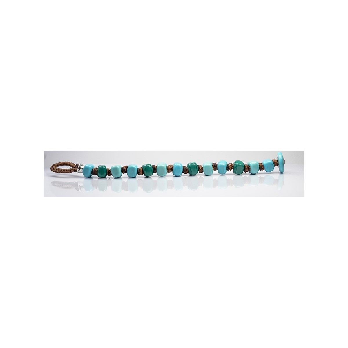 Original Moi Herren- und Damenarmband mit Stoffkordel und hellblauen und grünen Murano-Glasperlen, Designer Franco Cannarile - Grecale