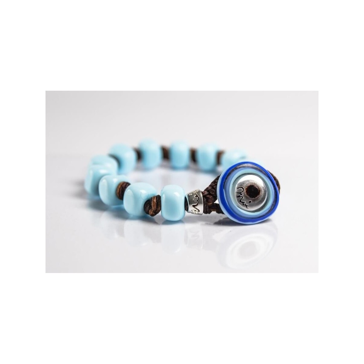 Original Moi Armband für Männer und Frauen mit Stoffschnur und opaleszierenden hellblauen Murano Glasperlen, Designer Franco Cannarile - Opale