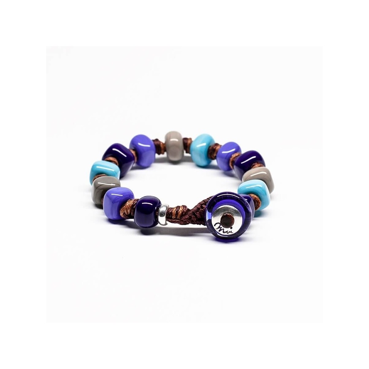 Original Moi Herren- und Damenarmband mit Stoffkordel und Muranoglassteinen Grau, Blau und Türkis, Designer Franco Cannarile - Denim