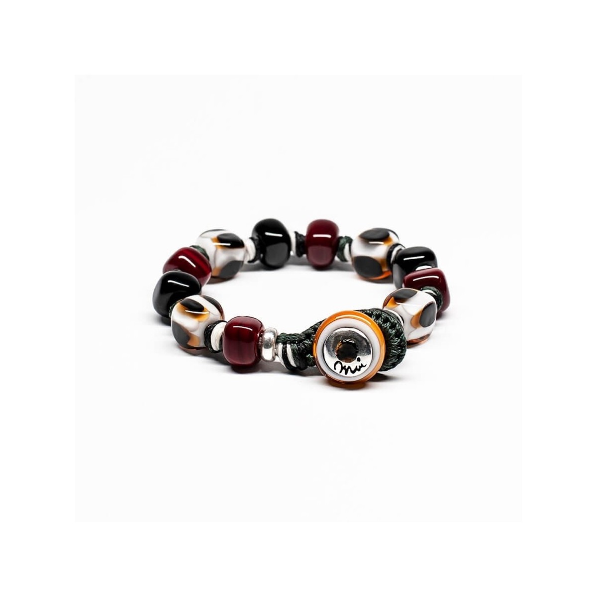 Original Moi Herren- und Damenarmband mit Stoffkordel und schwarzen und weißen burgunderfarbenen Muranoglassteinen, Designer Franco Cannarile - OROS